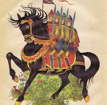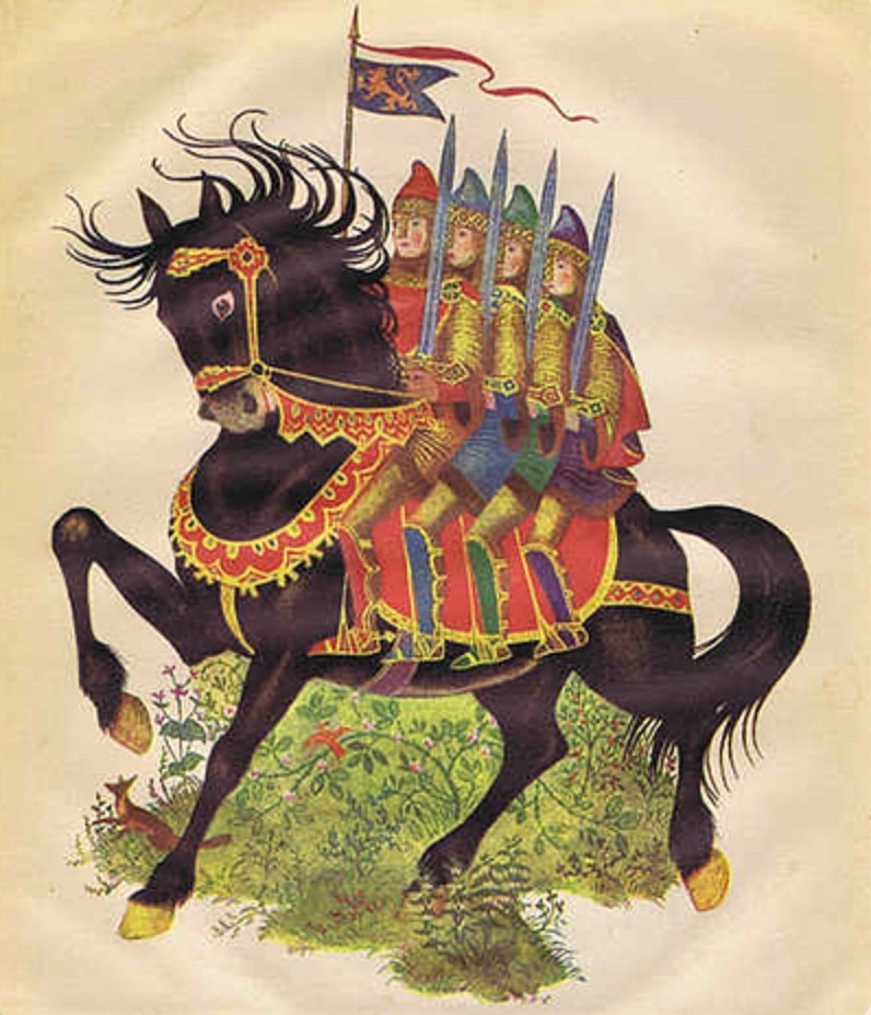 This is a folk tale from the Middle Ages. A tale that has been told for many centuries in Belgium, France, Germany and the Netherlands. It tells the tale of a large magnificent horse called Bayard and the four children or young knights who rode him in their adventures and revolt against the emperor Charlemagne.
